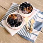 Esta versão de mirtilo usa ingredientes simples como leite integral, iogurte, xarope de bordo e extrato de baunilha. Tudo se mistura e então as sementes de chia engrossam até obter aquela textura clássica de pudim enquanto fica na geladeira. Esta versão é frutada, cremosa e incrivelmente fácil de preparar no café da manhã ou lanche da semana.